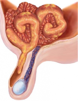 Hình 19: Hình vẽ mô tả túi thừa Meckel thoát vị vào ống bẹn (Littre hernia).